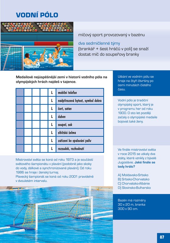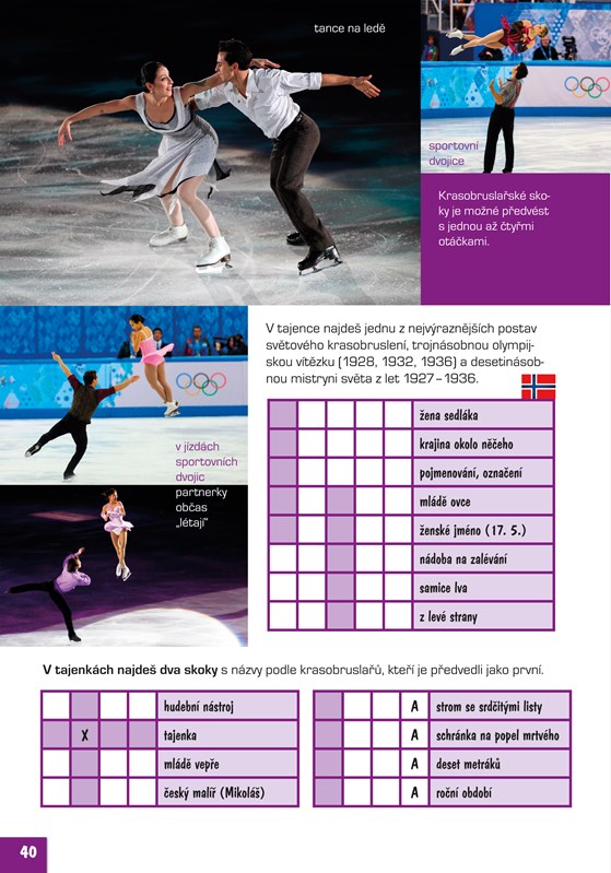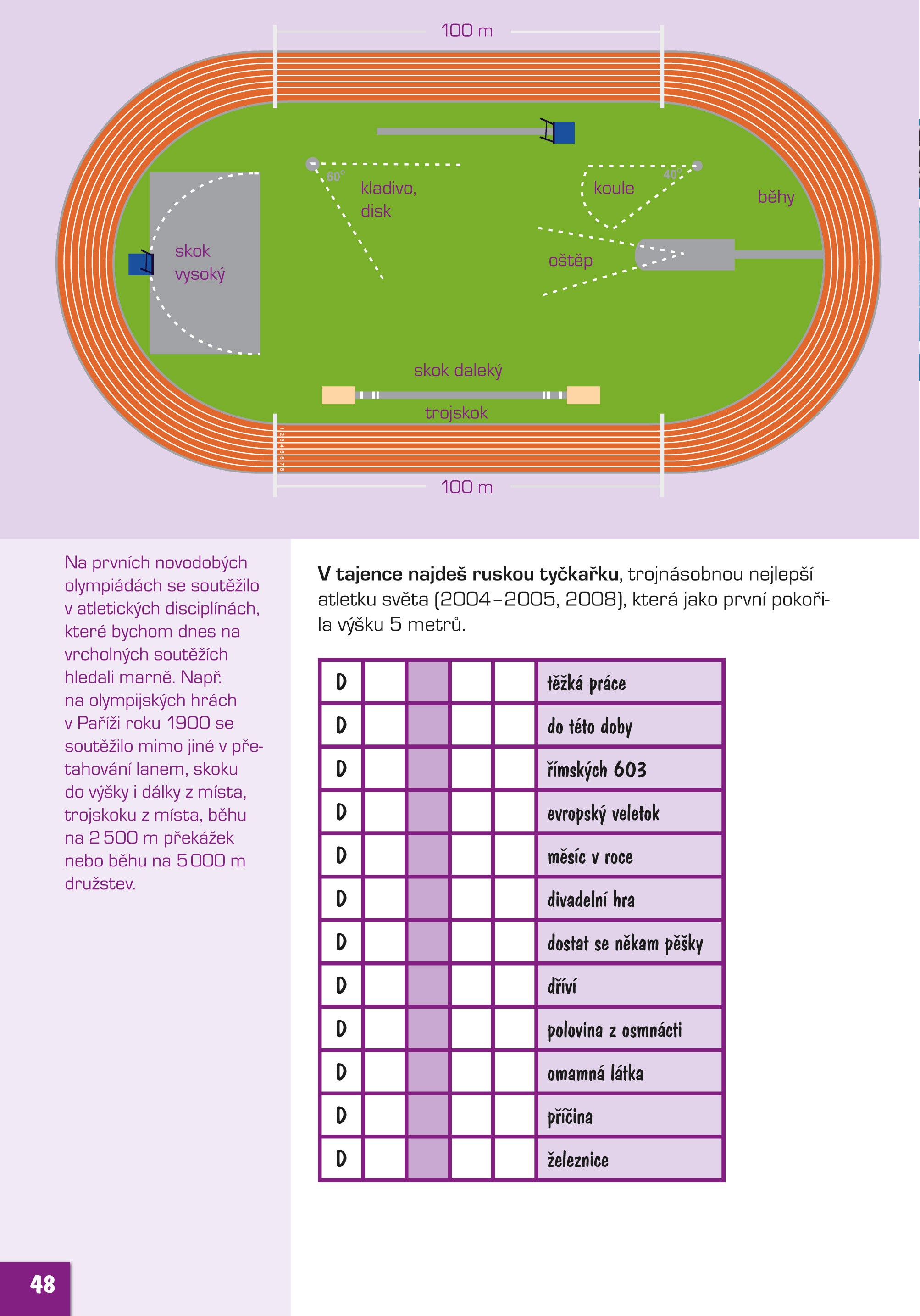 Nejste si jisti odpovědí? V Hrátkách se sportem pro děti najdete odpovědi. Čeká na vás 29 sportů – o každém se dozvíte něco z pravidel, najdete informace i zajímavosti o úspěšných sportovcích i týmech. Něco si sami přečtete, ale nebude to stačit – mnohé se totiž ukrytá v tajenkách různých doplňovaček, osmisměrek, čtvercovek a dalších hádankách a křížovkách.