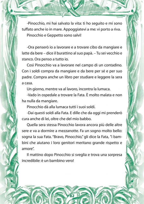 Tento známý příběh je zpracován pro účely těch zájemců, kteří začínají s cizím jazykem a chtěli by si vyzkoušet čtení italského souvislého textu. Jazyk jsme velmi zjednodušili. Český zrcadlový překlad umožní obratem zkontrolovat, zda jste italskému textu porozuměli správně. Na konci na vás čeká několik cvičení, ve kterých si můžete prověřit získané znalosti.