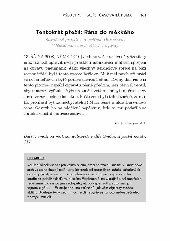Pokračování celosvětově populární série příběhů o lidech, kteří sami sobě přivodili kuriózní smrt neuvěřitelně hloupým způsobem. Tyto historky zpočátku kolovaly jen po e-mailech. V roce 1993 je americká bioložka Wendy Northcuttová začala sbírat a později založila web Darwin Award. Principem Darwinovy ceny je předpoklad, že lidská hloupost, která způsobí smrt svému nositeli, je dána geneticky a v duchu Darwinovy teorie přirozeného výběru se tak tento nebezpečný gen odstraňuje.