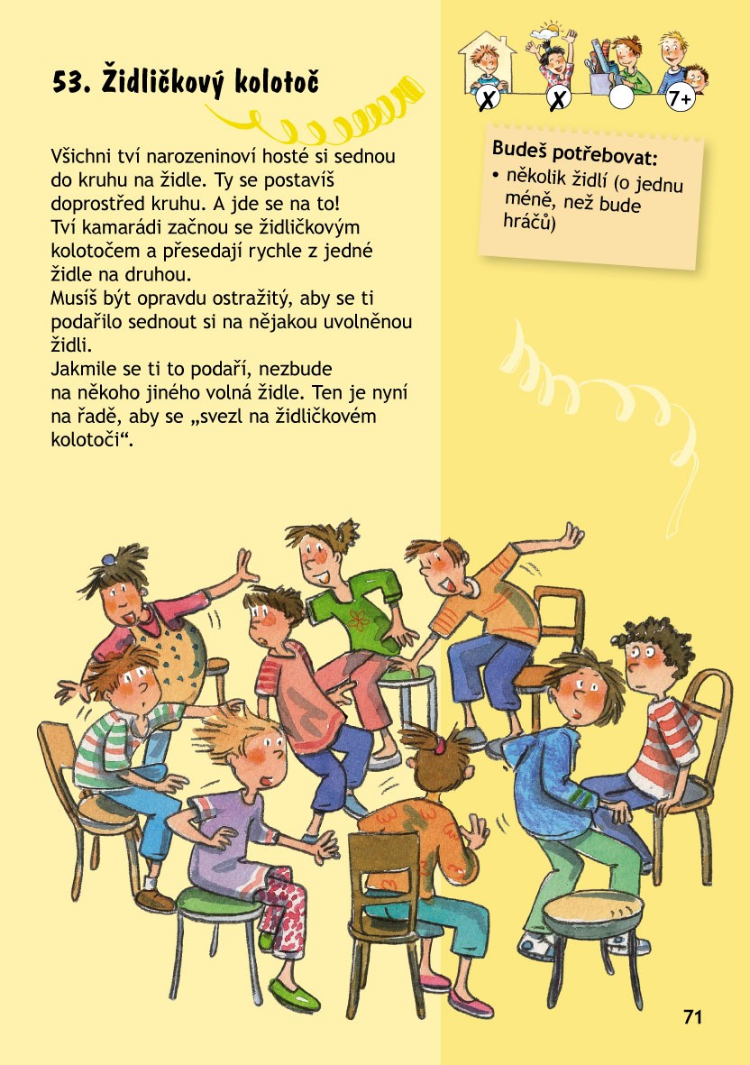Přinášíme hry pro různé věkové kategorie, na doma i do přírody, klidné i bujaré. Některé vyžadují přípravu, jiné jsou zcela bez práce. Nechybí tipy, jak oslavu naplánovat nebo jak připravit výzdobu a pohoštění.