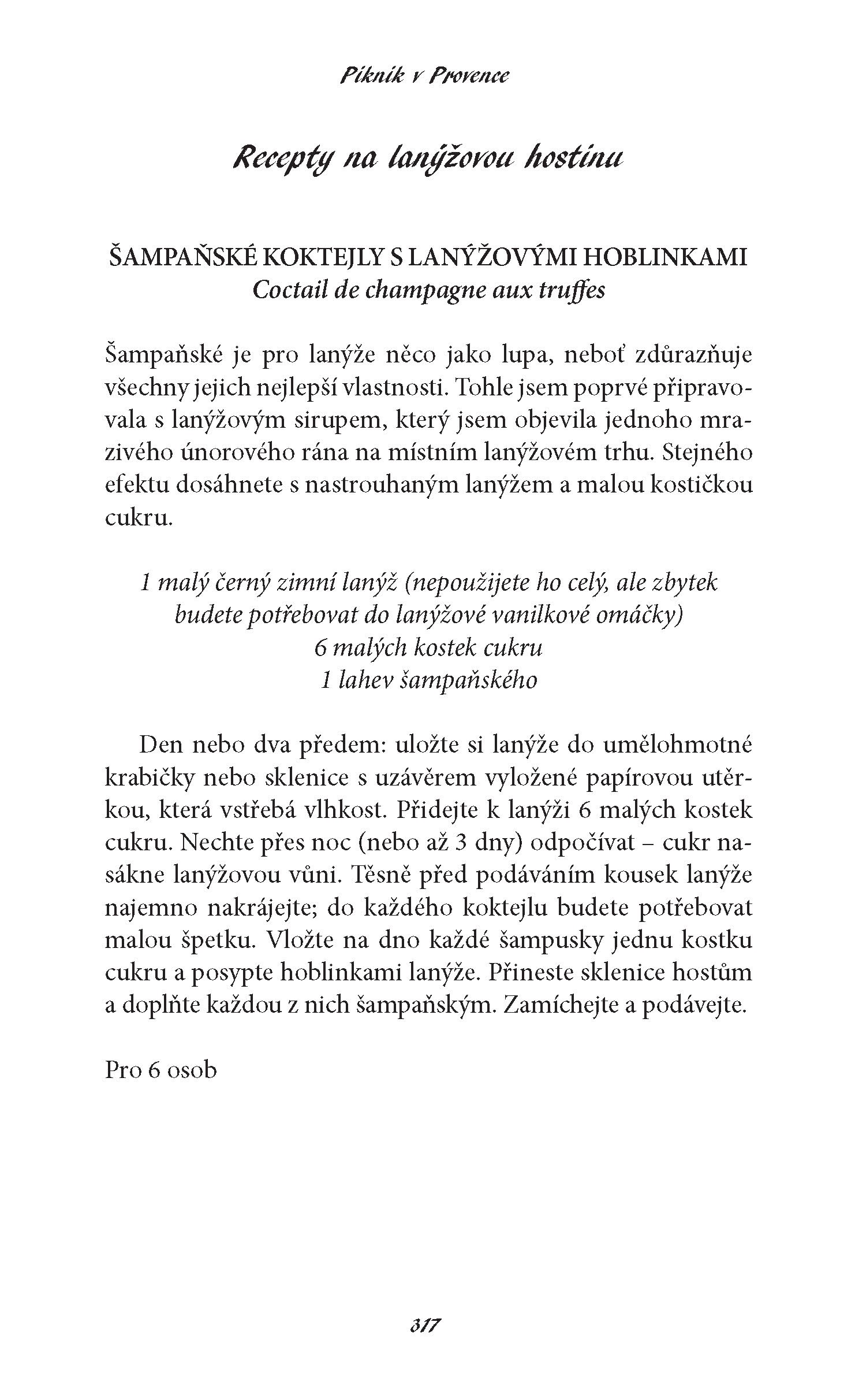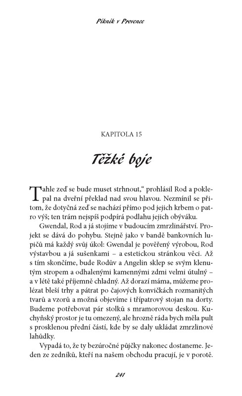 Elizabeth s manželem při romantickém výletu propadli kouzlu Provence, rozhodli se odstěhovat na venkov a otevřít si tam zmrzlinářství. Její druhá autobiografická knížka obsahuje lákavé recepty na jídla jako plněné cuketové květy, fíkový koláč či medovo-tymiánová zmrzlina, ale především vypráví o všem, co se může stát, když se dva lidé z města přestěhují na venkov, když manželé zakládají společný podnik, když se americké děvče učí francouzskému stylu rodičovství a když vášnivá kuchařka objevuje klasickou provensálskou kuchyni. S vtipem, humorem a kopečkem jahodového sorbetu nám Elizabeth připomíná, že život – v kuchyni i mimo ni – je dostaveníčko s neočekávaným.