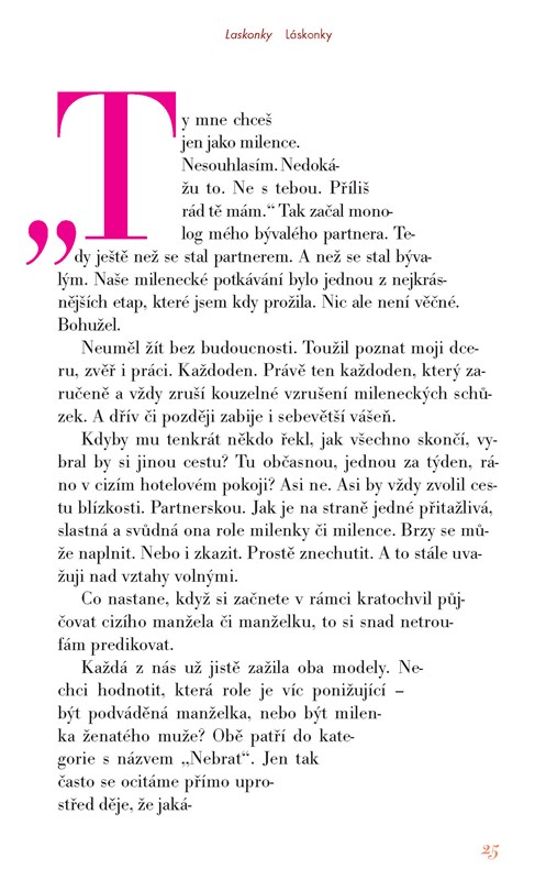 Proč si neustále obouváme boty, které přece vždycky tlačily… Může existovat nevěra, která nezraňuje? Opravdu lze mít sex bez závazků? A kdy přijde po střídavé péči i střídavá povinnost a role rodičů se konečně vyrovnají? Povídky o nešťastné zamilovanosti a šťastných flirtech. Láskonky jako Laskonky. Krátké texty pro dlouhé večery od Barbary Nesvadbové, doprovázené tvorbou Pasty Onera.
