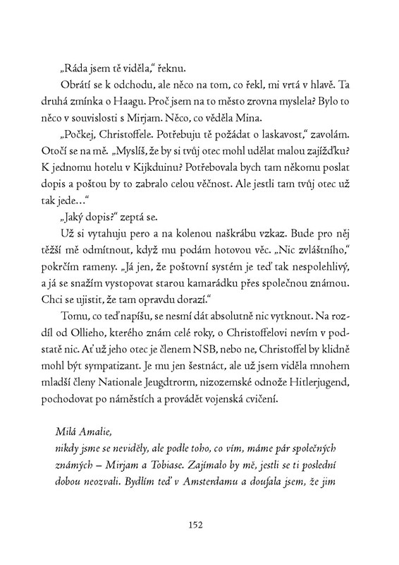 Hanneke zprvu ani neuvažuje o tom, že by se do nebezpečného pátrání pustila. Pak ale položí první otázku. Když dostane odpověď, chce najednou vědět víc. Postupně je vtažena do pavučiny tajemství a ohromujících odhalení, která ji zavedou až do samého srdce studentského protinacistického odboje…
