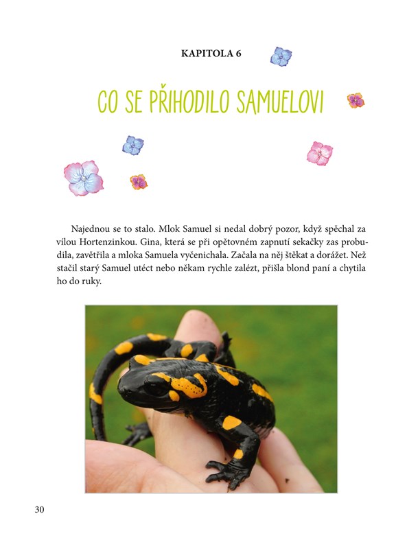 V neobyčejném pohádkovém příběhu se seznámíte s malou vílou Hortenzinkou a jejím přítelem mlokem Samuelem. Na stránkách knihy na vás čekají také Violka s Konvalinkou, Silvián a Malinda s Ostružindou, ještěrka Zeminka, koník Kuliferda, ještěrka Pyšnilka Krásnoočko, ropucha Růža, kobylka Matylda a další. Buďte při tom, když pořádají závody a sportují, veselí se na večerní slavnosti, prožijí dramatický noční výlet nebo tu vznikají nová přátelství a láska. Zažijte s nimi všechna jejich dobrodružství!