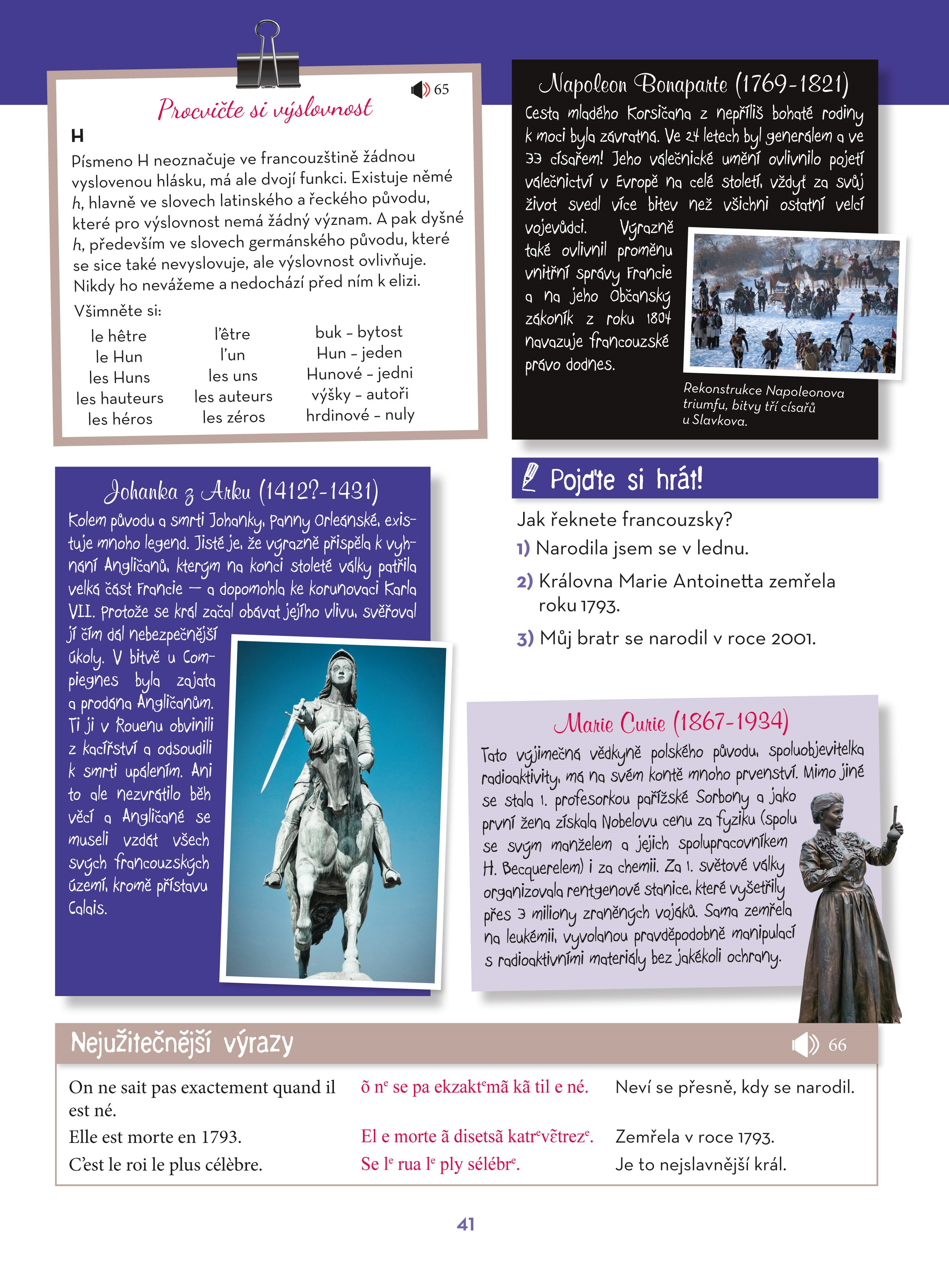 * Poznejte zajímavosti Francie a frankofonního světa: Co znamená vélib‘ a proč je tak populární? Do jakého regionu se vydat za nejlepším vínem? Jak se chovat na návštěvě u Francouzů? Jak oslovit číšníka v restauraci? Za co vděčíme Velké francouzské revoluci? Kde vznikl pétangue?
