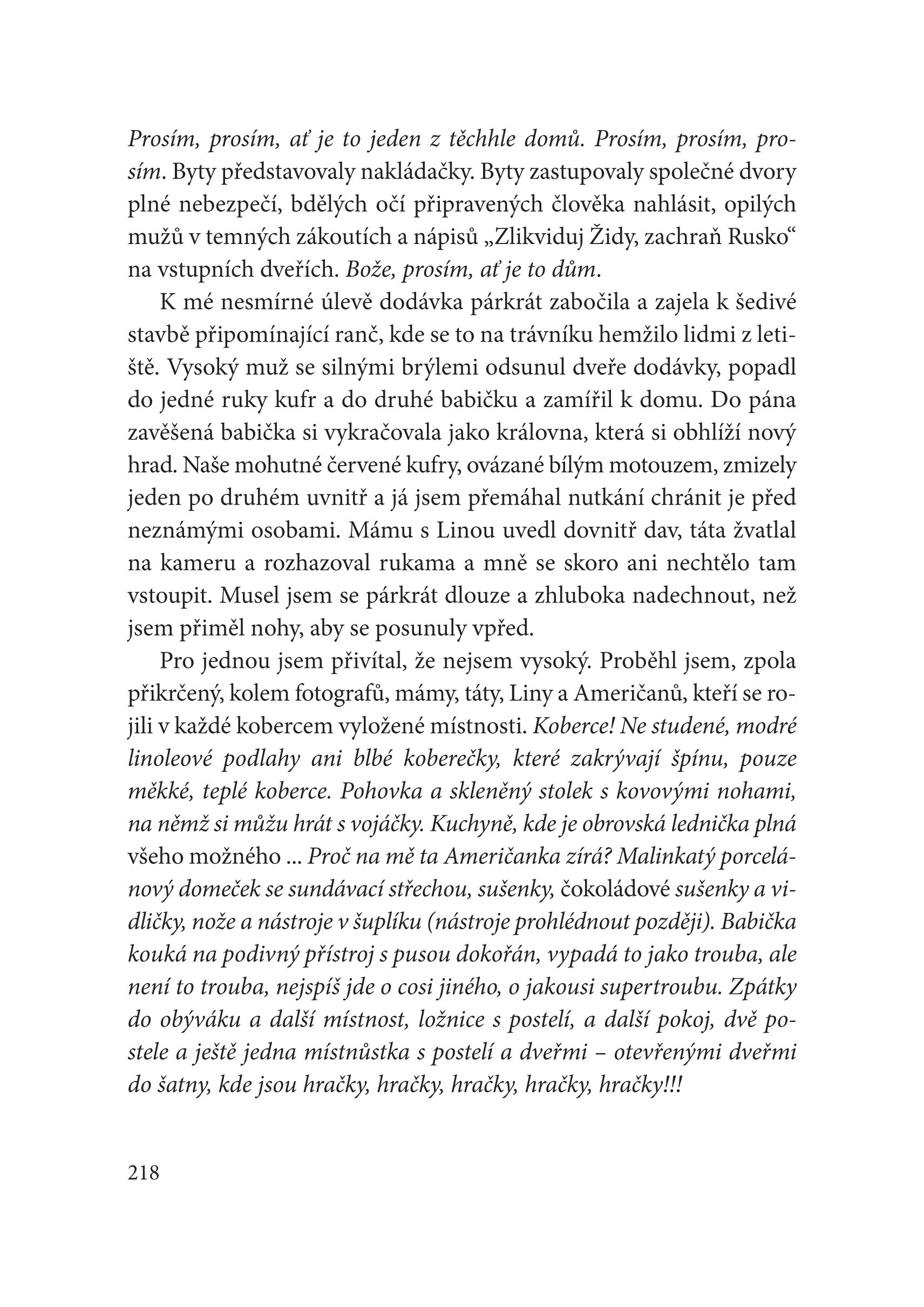 Jaké to je být malým židovským klukem v Sovětském svazu osmdesátých let? A jak to probíhá, když se rozhodnete emigrovat za oceán do vysněné země? To vše a ještě mnohem více naleznete v autobiografickém románu Lva Golinkina – skvělého vypravěče i pozorovatele, mistra břitkého humoru i nadsázky. Autorova výpověď je neotřelým popisem kulis rozpadajícího se impéria i strastiplné cesty za lepší budoucností a hledání vlastní identity. Kniha je však nejen poutavým a zábavným čtením o trampotách rodiny Golinkinových, ale také poselstvím o tom, že lidská nezištnost a solidarita, potřeba být potřebným, je něco co nás všechny spojuje.