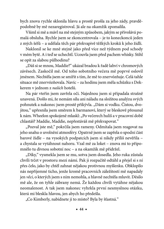 Madison Hortonovou nikdy nenapadlo, že by její život mohl být něčím jiným než pouhým přežíváním. Matka, která nikdy nebyla skutečnou matkou. Milenec, který ji nikdy nemiloval. Přítelkyně, která ji vždycky považovala za nepřítele. Maddie pochopila, že opravdové a skutečné jsou jen bolest a utrpení. Naučila se, že se na ně může spolehnout.
