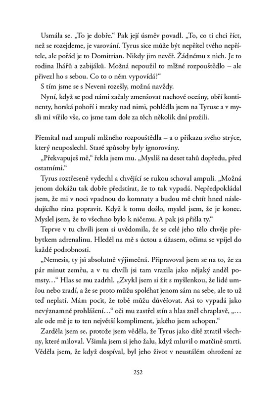 Nemesis a Sidonie jsou spolu od malička a jsou na sebe napojené jako sestry. Když se Sidoniin otec přidá na stranu rebelů a je Imperátorem žíznícím po moci prohlášen za kacíře, přichází odplata. Sidonie je povolána na galaktický dvůr jako rukojmí. Její přítomnost má zajistit senátorovu poslušnost a držet ho tak v šachu. Je jisté, že Sidonii hrozí smrt a proto existuje jen jediná možnost: Nemesis se musí stát Sidonií a odjet na dvůr místo ní.