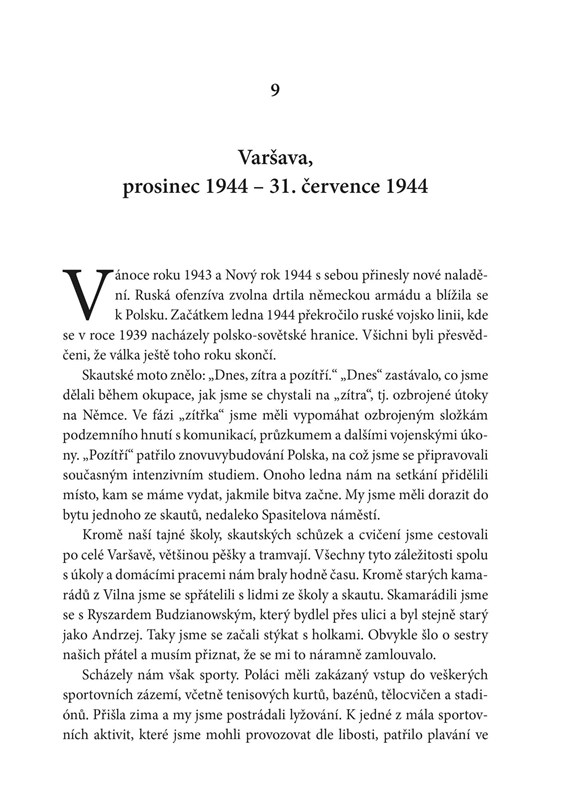 S odzbrojující upřímností popisuje německou i ruskou okupaci, přičemž hlavní část jeho příběhu spočívá v podrobném líčení průběhu 63 dnů trvající městské bitvy v ulicích, domech i kanalizaci Varšavy. Tehdy již jako třináctiletý mladík aktivně působil v protinacistickém odboji a byl platným členem legendární jednotky KB Nalecz. Co však tuto knihu činí skutečně výjimečnou, je její přesah - kdy osobní vzpomínky zasazuje autor do širšího kontextu a podává tak ucelenou výpověď o událostech, které zásadně změnily politickou mapu Evropy.