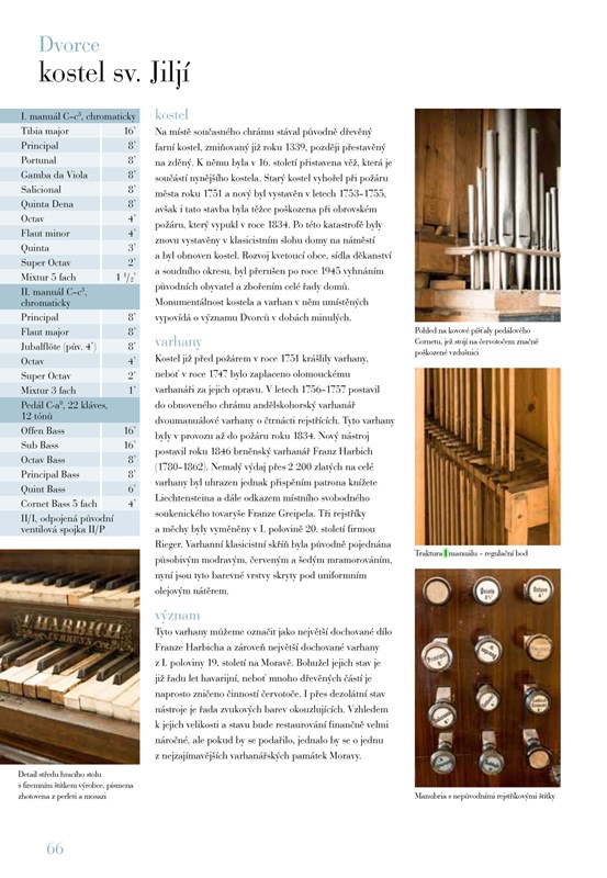 Na dalších stranách knihy se potom již nachází přes 110 varhan z celé České republiky, od konce 16. století až po současnost, které jsou představeny nejen textem, ale i bohatým obrazovým doprovodem.