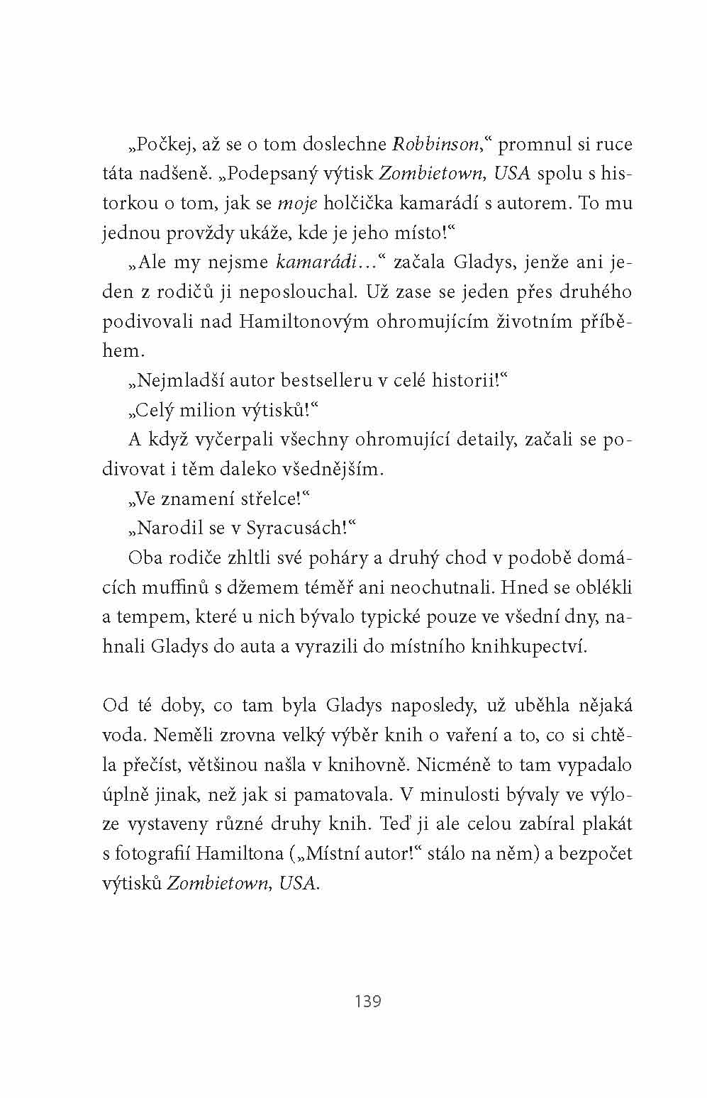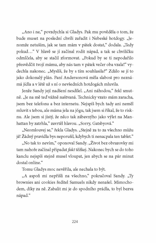 Gladys Gatsbyová je trochu jiná než ostatní holky. Nezajímá ji oblečení ani kluci, volný čas totiž nejraději tráví v kuchyni. A když zrovna nemůže vařit, čte si v kuchařkách nebo píše kritiky restaurací. Školní rok právě končí a ji čekají ty nejlepší prázdniny plné dobrot. Jenže co když bude všechno jinak? Rodiče ji posílají… na tábor! A k tomu všemu dostává z redakce novin New York Standard úkol najít nejlahodnější hotdog v New Yorku…