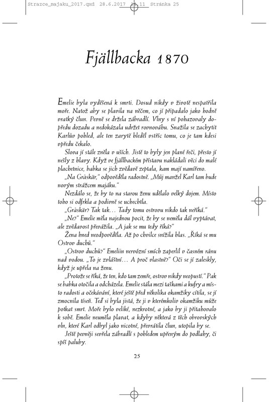 Patrik Hedström se po těžké nemoci vrací do zaměstnání. Zároveň mají on i jeho manželka Erika plné ruce práce s předčasně narozenými dvojčaty. Hned po návratu na policejní stanici ho zcela pohltí nové vyšetřování vraždy. Obětí je ekonom Mats Sverin, rodák z Fjällbacky, který žil dlouhá léta v Göteborgu a teprve před nedávnem se po tragické události do rodného kraje opět přistěhoval. Mats měl pověst přátelského a oblíbeného chlapíka, o svém soukromí se však s nikým příliš nebavil. Vychází najevo, že těsně před smrtí navštívil svou dávnou lásku Annie na ostrově Graskär, o němž v kraji odjakživa kolovaly velmi zlověstné příběhy. Říká se, že ostrov obývají duchové mrtvých, a ti by živým rádi předali své poselství…