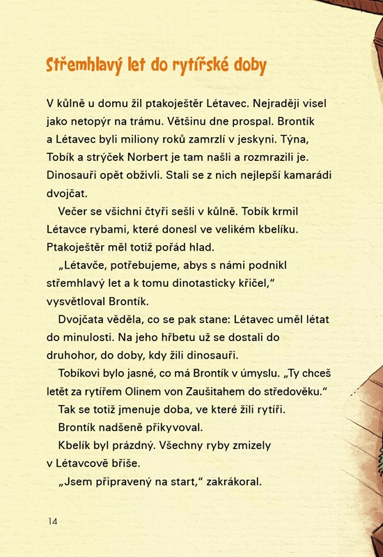 Dvojčata Týna a Tobík jedou se školou na výlet a samozřejmě sebou vezmou své pravěké kamarády Brontíka a Létavce. Při prohlídce hradu si všimnou nenápadného zaprášeného obrazu. Je na něm maličký, velmi hubený rytíř. Jeho brnění je pomačkané a zrezivělé.