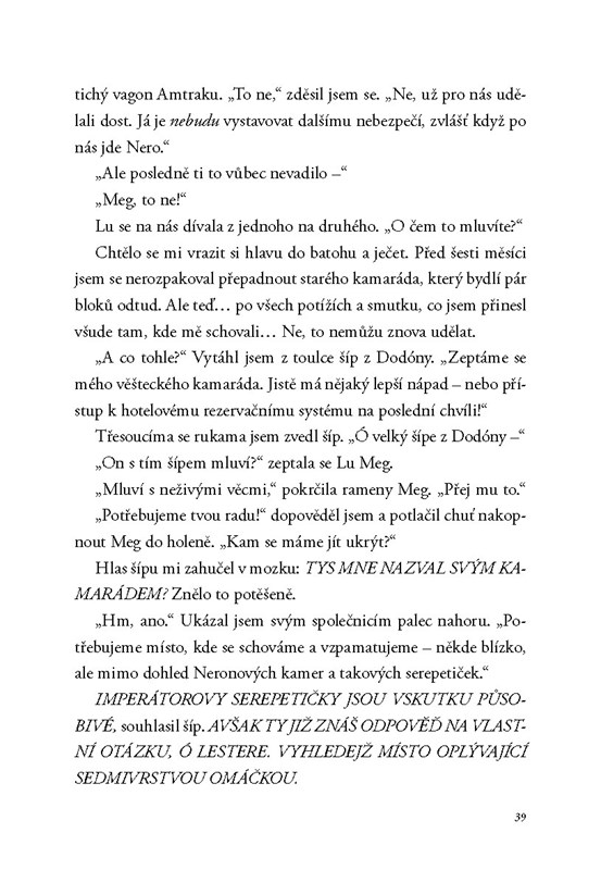 Řecký bůh Apollón, který byl vykázán na Zemi jako ubohý puberťák Lester Papadopoulos, se konečně ocitl na konci své cesty zpět na Olymp. Polobožští přátelé z Tábora Jupiter mu právě pomohli přežít řadu strašlivých útoků a nyní bývalý bůh se svou polobožskou velitelkou Meg musejí poslechnout proroctví, které odhalila harpyje Ella. Lesterova poslední zkouška proběhne v Neronově pevnosti v New Yorku. Najde tam konečně svoje rozhřešení?