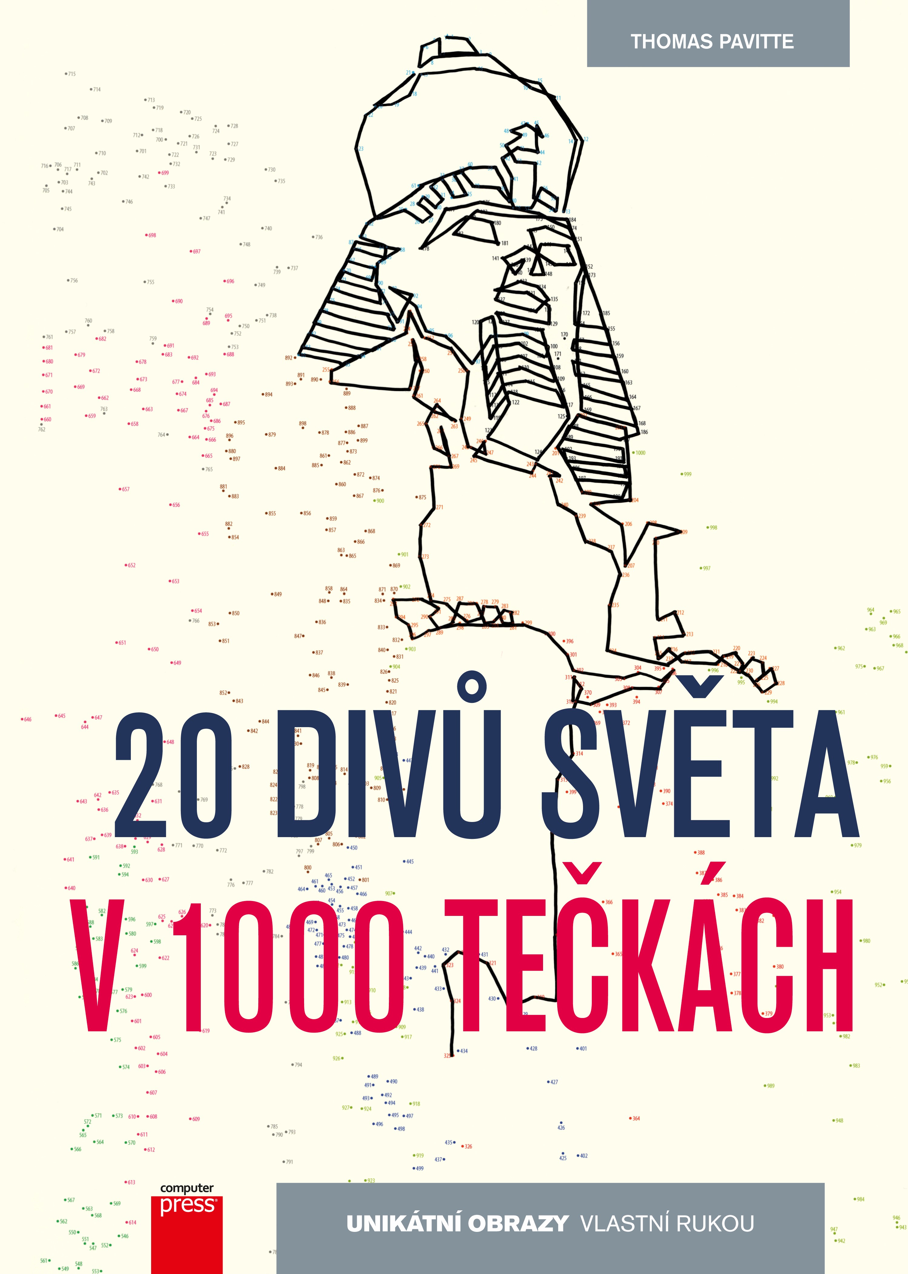 Vydejte se na cestu do historie a objevujte skvosty naší planety ve formě spojovaček složených z 1000 teček. Světoznámý grafik Thomas Pavitte v publikaci 20 divů světa v 1000 tečkách představuje další úžasné obrazy, které si s trochou trpělivosti sami vytvoříte pomocí jediné spojité čáry. Stránky jsou u hřbetu knihy perforované, takže si výsledné obrazy můžete z knihy vytrhnout, zarámovat a vystavit.