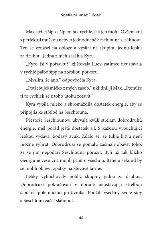 Po příchodu do vesnice pomůžou Steve a jeho parta vyhrát vesničanům velkou bitvu. Jenže to ještě netuší, že to je teprve začátek jejich opravdového dobrodružství. Doslechnou se, že za vesnicí stojí neobvyklá farma, kde jeden ze záškodníků pěstuje kostlivce a sbírá jejich kosti. Jsou útoky na vesnici jeho tajným plánem? Nesnaží se kostlivci pouze utéct z jeho krvelačných spárů?