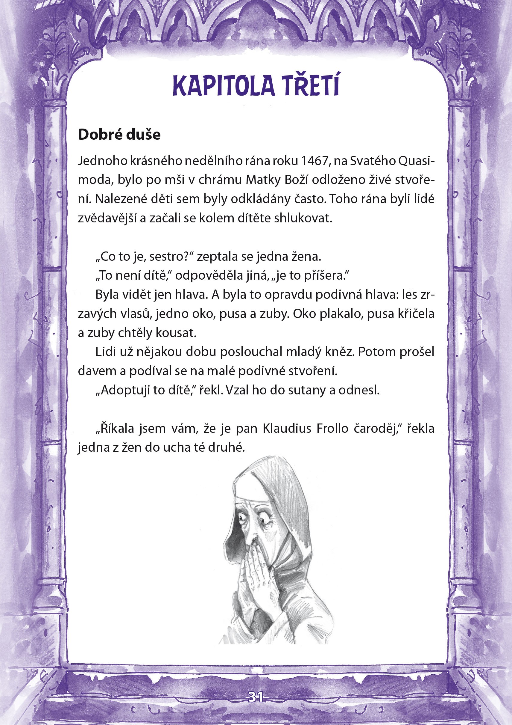 Přečtěte si příběh o překrásné Esmeraldě a o mužích, kteří propadli jejímu kouzlu. Ošklivému hrbáči Quasimodovi, proradnému knězi Klaudiu Frollovi ani lehkomyslnému kapitánu Phoebovi však tato láska nepřinesla nic jiného než utrpení. I Esmeralda skončila tragicky. Byla obviněna z vraždy, mučena a nakonec popravena…