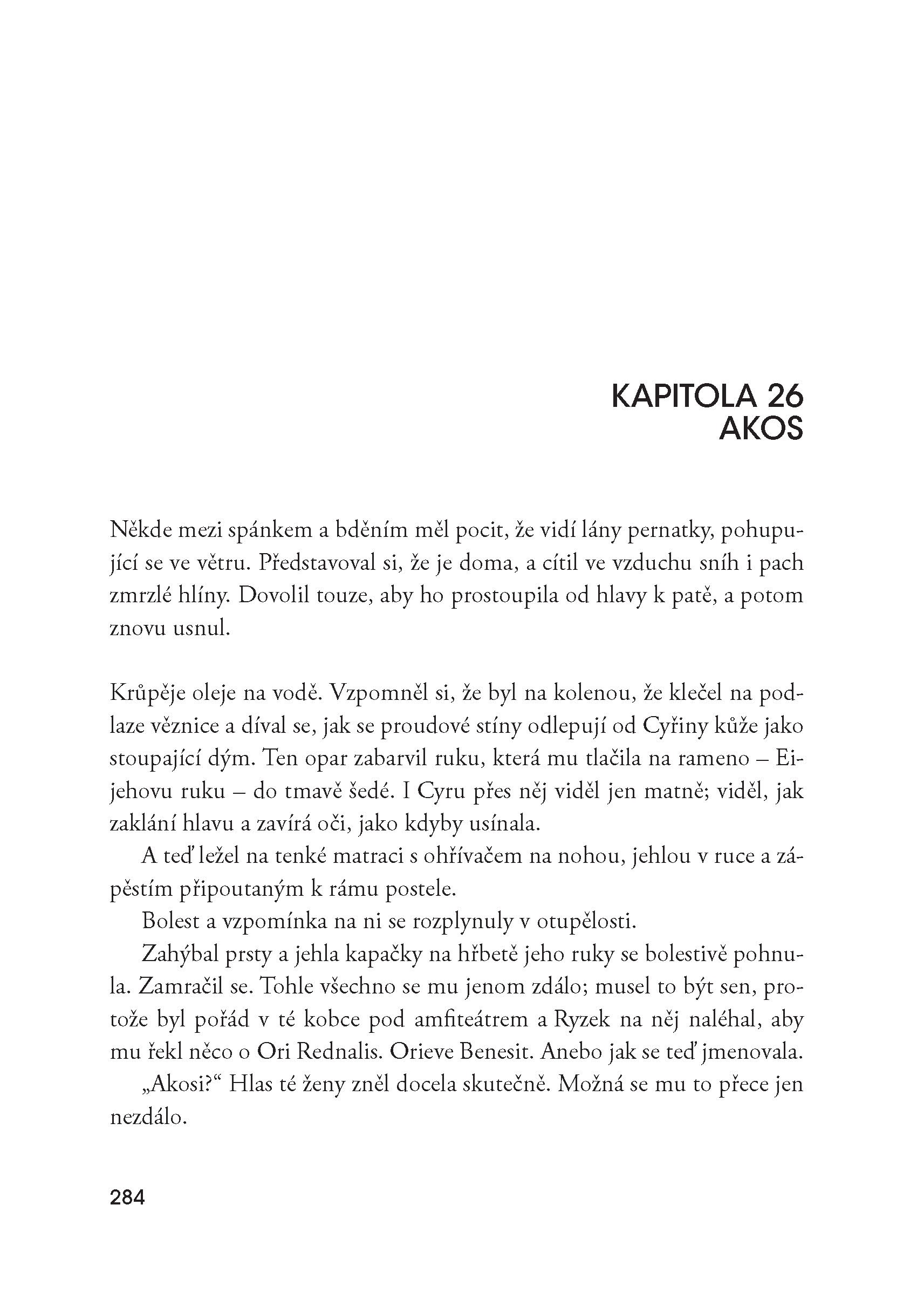Akos pochází z mírumilovného národa a je nadevše oddaný rodině. Když ho společně s bratrem zatknou vojáci vyslaní Cyrinou rodinou, snaží se jen o jediné – zachránit bratra na úkor vlastního bezpečí. Akos a Cyra stojí před rozhodnutím – pomoci si navzájem a možná přežít, nebo přinést jeden druhému neodvratnou zkázu?