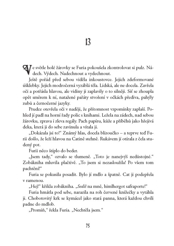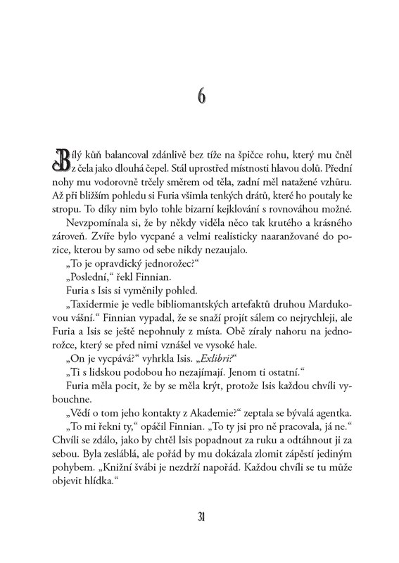 Furia je na nejlepší cestě stát se skvělou bibliomantkou a proniká stále více a více do magického světa knih. Ale celému světu starých knihoven a mocných knižních svazků vládnou tři tyranské rody. Scházejí se v tajné komnatě, kde rozhodují o osudu bibliomantů i exlibris. Ale Furia a její přátelé se tyranské vládě nehodlají podvolit, a tak vyrážejí na dobrodružnou výpravu přes několik refugií, aby zničili centrum moci. A přitom narazí na největší tajemství světa bibliomantiky.
