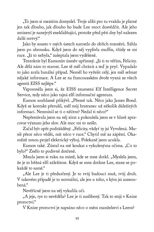 Felicity ještě pořádně nezpracovala myšlenku, že je předurčená zachránit říši elfů, když ji ti samí elfové obviní z vraždy a vymažou ji z knihy proroctví. Půlelf Lee ji chce zachránit a vydá se proto do magického světa hledat důkazy na její obhajobu. Když se však dlouho nevrací a Felicity začne mít divné vize spojené s propady do minulosti, jde ho hledat. Její pátrání ale přinese další nečekané odhalení: nejen, že je předurčená zachránit elfy, je prý i dračím dítětem!
