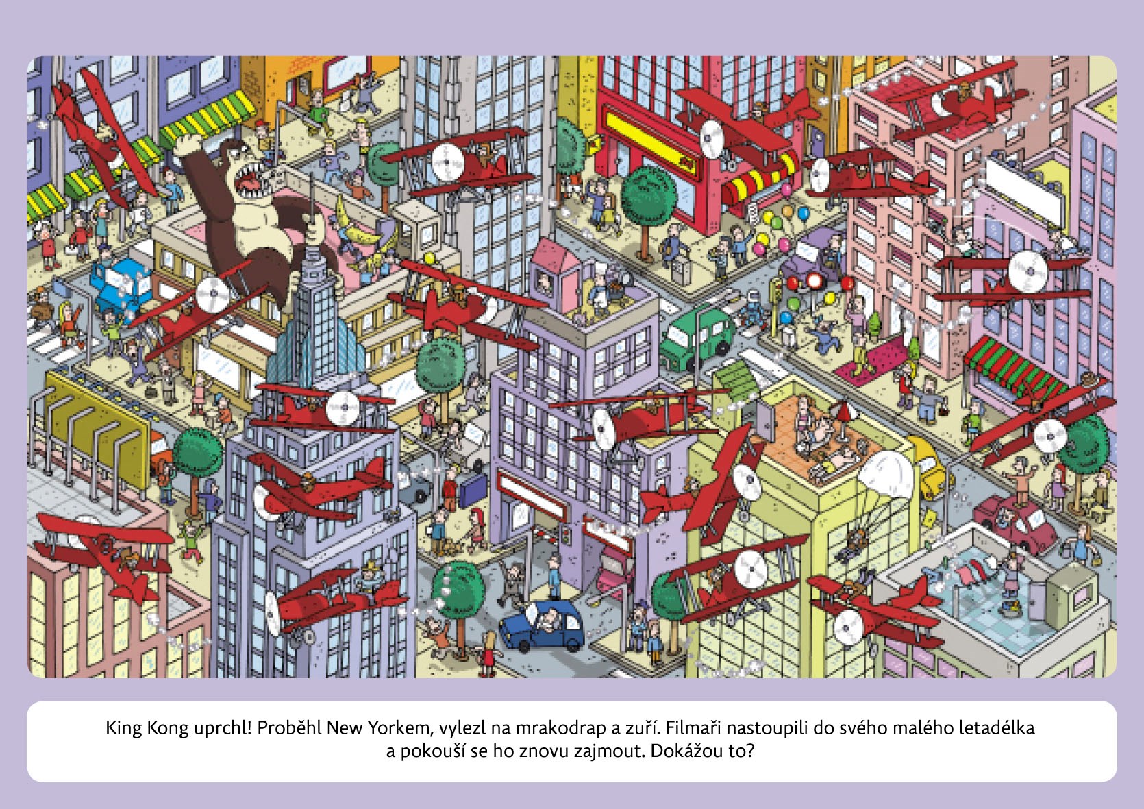U Zorra mstitele, Robina Hooda a jejich přátel je ale pěkný nepořádek! Superman se prohání po Koloseu, Santa Claus se přidal k hasičům, psi létají na koštěti a po New Yorku se prochází King-Kong. Dokážeš všechny ty bláznivé postavičky najít?