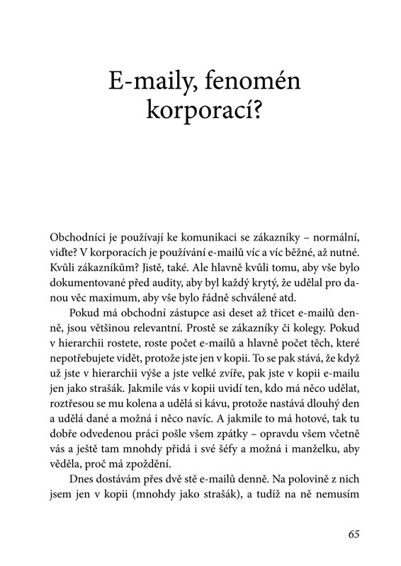 „Vtipné, čapkovsky laskavé nahlédnutí pod pokličku firem nejen korporátních.“