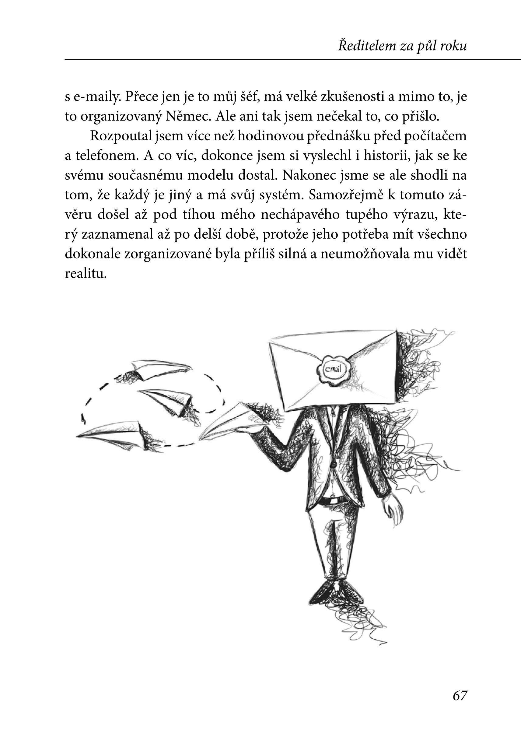 Může se stát, že zrovna vám rady a tipy popsané v knize nebudou fungovat, a tím pádem se nestanete generálními řediteli během pár měsíců, ale možná až za pár let. Na každý pád se u čtení knížky dobře pobavíte.