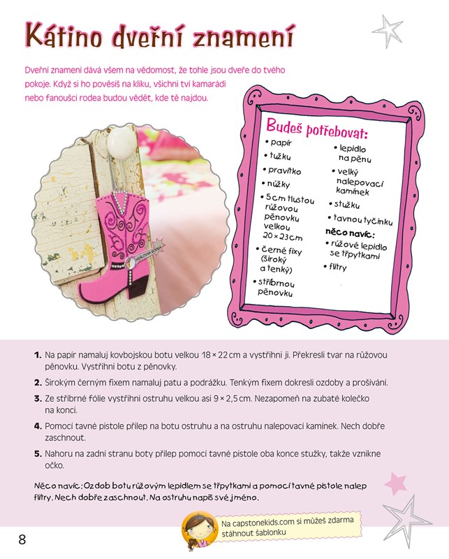 Baví tě vytváření různých doplňků, drobností a nezbytností pro holčičky, ale i pro kovbojky, tábornice nebo pirátky? Jestli si ráda hraješ s papírem, látkou, korálky či ozdobnými kamínky, je tato kniha pro tebe jako stvořená. Káťa Líbezná ti prozradí svoje tipy, s kterými ti všechno půjde skoro samo. Tak se s ní pusť do práce a potěš svými výrobky například nějakou kamarádku.