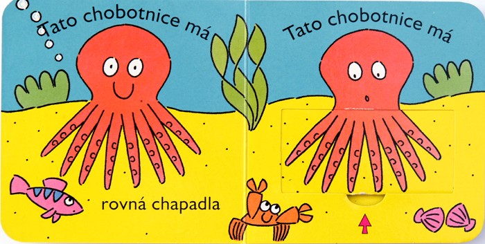 Interaktivní leporelo s posuvnými obrázky, které podporuje rozvoj zrakového vnímání, jemné motoriky a myšlení. Posouváním pohyblivých částí děťátko odkryje veselá překvapení a naučí se mnoho nového. Pestré barvy, roztomilá zvířátka a žertovné situace pobaví každého smíška.