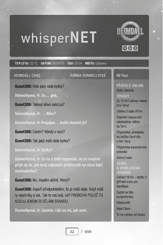 Hanna pobyt na vesmírné stanici v galaxii kdesi na konci vesmíru vždy vnímala jen jako ztrátu normálního společenského života. Nikdo jí ale neřekl, že jí pobyt tady může stát život.