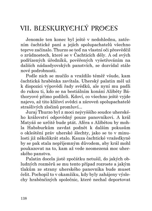 Důkladná sonda do duše šílené ženy pronásledované vizí věčného mládí. Kdo byla vlastně hraběnka Alžběta Báthoryová? Co v ní podnítilo vražedné sklony a zášť k mladým dívkám? Proč, ač usvědčena, nebyla nakonec potrestána? Z dobových materiálů, které zkoumají případ známé sadistické vražedkyně Alžběty Báthoryové, je patrné, že u nás proslulý román Joži Nižnánského Čachtická paní je v poměru k historickým skutečnostem pouhou beletristickou selankou. To, co odhadují dochované záznamy z výslechů svědků a další písemné prameny, patří k nejhrůznějším kauzám světové kriminalistiky.