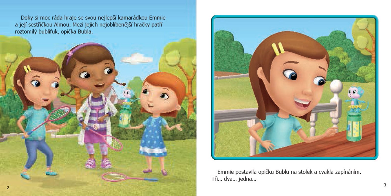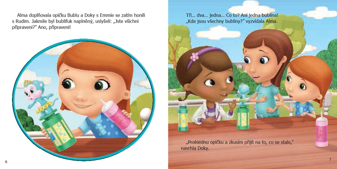 Doktorka Plyšáková s kamarádkami Emmie a Almou milují pouštění bublin. Pomáhá jim v tom Bublifoukací opička.