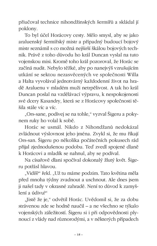 Zjišťují, že Horác byl v Nihon-džinu zatažen do místních záležitostí. Zpupná kasta sendžiů povstala proti právoplatnému císaři a Horác se rozhodl zůstat a podpořit svrženého vládce. Teď musí společně s Willem přetvořit rolníky a dřevorubce ve vojenskou sílu, která dokáže čelit vycvičeným sendžiským bojovníkům. Evanlyn a Alyss musejí zároveň překonat dlouho trvající soupeření a hledat pomoc u tajemné skupiny horských obyvatel.