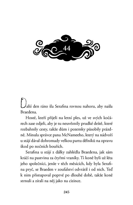 Serafině se stalo něco zvláštního. Probudila se do temnoty a světa, kterému nerozumí. Biltmorské panství se tolik změnilo, její staří přátelé dělají nemyslitelné věci a zdá se, že nepřátelé jsou všude okolo. Biltmorem prochází síla beze jména, která s sebou přináší násilné bouře, jež smetou vše, co jim stojí v cestě. A Serafina musí přijít na to, co se stalo, aby mohla zachránit nejen sebe, ale i ostatní