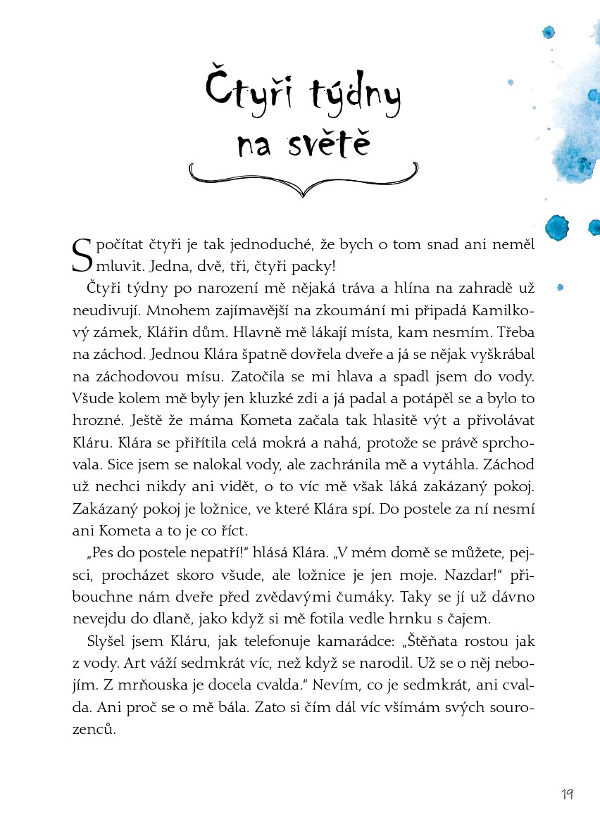 Narodil jsem se v chovné psí stanici jménem Kamilkový dům a teď bydlím u holčičky Saši. Mám se u ní moc dobře a přál bych si, aby pejsek, který bude bydlet u tebe, byl stejně šťastný jako já. Přečti si mé vyprávění a dozvíš se třeba:
