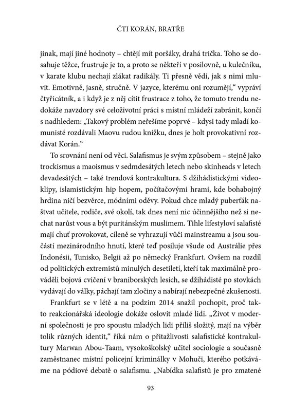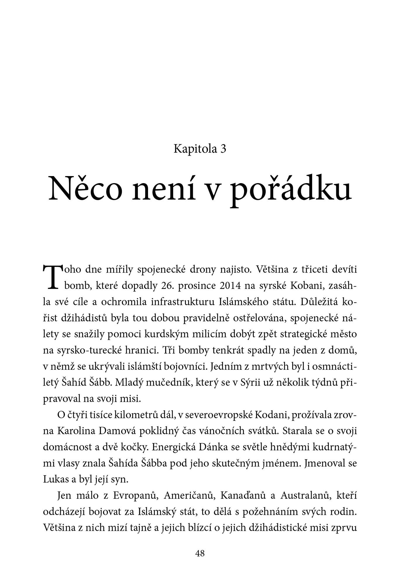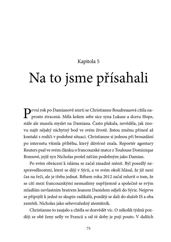 Ondřej Kundra se se svým kolegou Tomášem Lindnerem tentokrát ponořuje do velmi křehkého tématu – přináší příběhy mladých Evropanů, kteří konvertovali, radikalizovali se a odešli bojovat za Islámský stát. V řadě případů v Sýrii zemřeli, doma po nich zůstali rozbité rodiny, opuštěné matky a otcové, mnoho z nich se dodnes s žalem nedokáže vyrovnat. Autoři při práci na knize navštívili většinu postižených evropských zemí a mluvili jak s pozůstalými, tak s džihádisty, kterým se podařilo přežít a vrátili se domů. Díky rozhovorům s nimi čtenář získá odpověď na otázku, proč jsou ochotni všeho se vzdát, včetně svého života a připravit o něj další nevinné lidi. Kniha se snaží rozbít mýtus, že teroristy se stávají jen muslimové, autoři ukazují, že tato drastická zkušenost může potkat v podstatě jakoukoliv rodinu a nikdo dopředu není vůči riziku džihádismu imunní. Co vede mladé Evropany k tomu, že se dávají do služeb IS a že se radikalizují? Jak se cítí francouzská matka, jejíž syn coby příslušník IS zemřel v Sýrii a ona se o jeho smrti dozvěděla esemeskou? Kniha podrobně mapuje i příběh zatím jediného českého radikála, s nímž probíhá soud.