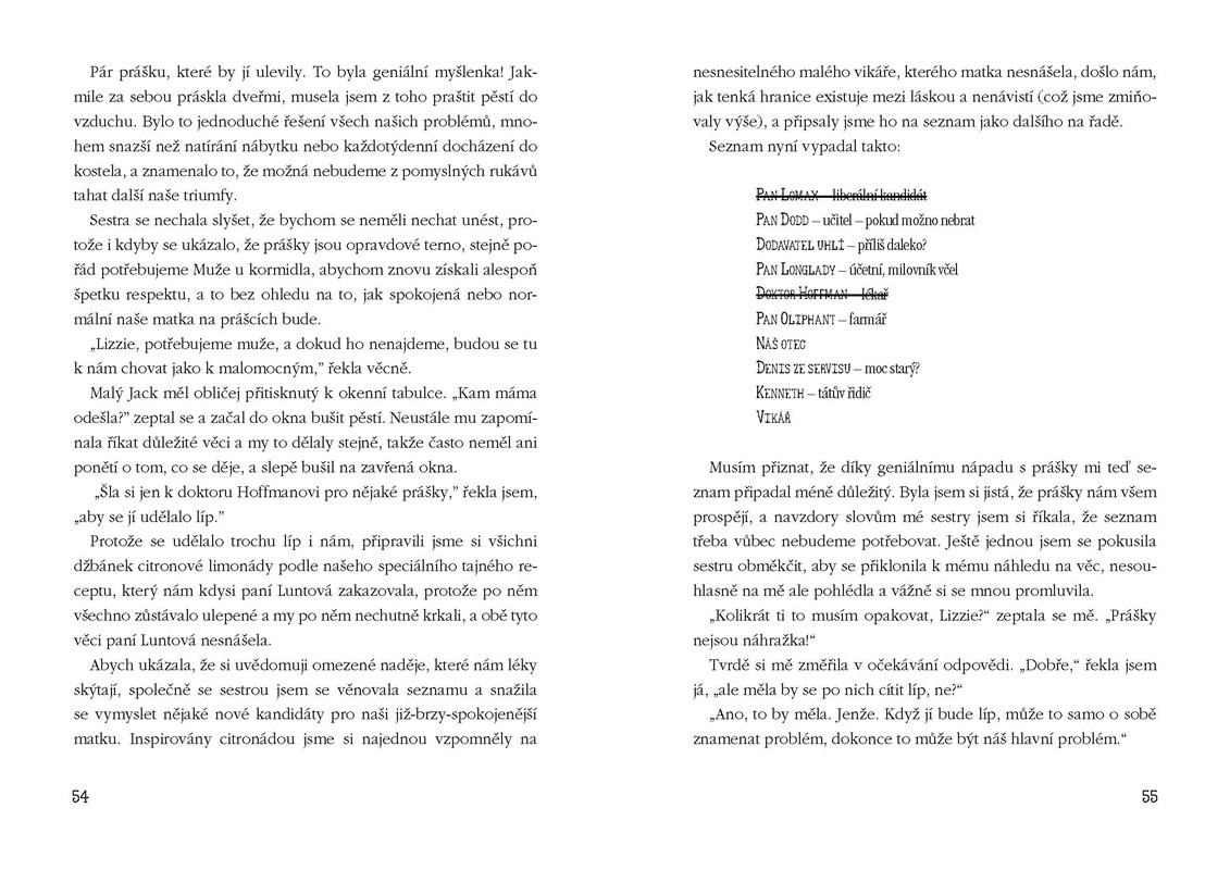 Krátce po rozvodu rodičů se devítiletá Lizzie, její sestra, mladší bratr a fenka labradora namísto Londýna ocitají v mrňavé nehostinné vesnici v Leicestershire 70. let 20. století. Jejich matka se totiž rozhodla na venkově hledat útočiště pro svůj smutek a naštvanost na sebe i celý svět. Není divu, že se brzy začne utápět v alkoholu, psát cynické divadelní hry a domácí práce poněkud zanedbávat…