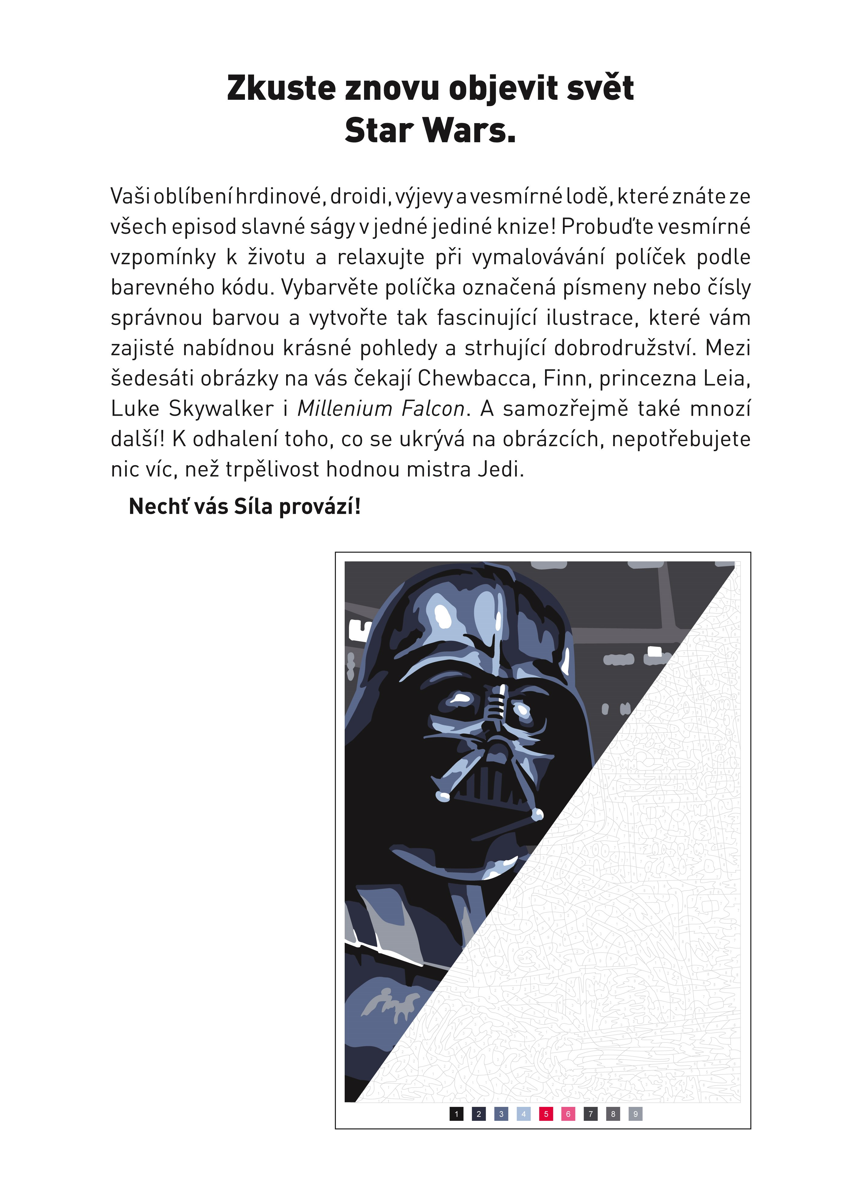 Vítejte na vesmírné misi! Vaším cílem je proměnit stránky této knihy na ilustrace z kultovního světa Star Wars®. Spojováním teček vytvoříte ilustrace svých známých postav, droidů, strojů nebo dokonce celých výjevů. A to je výzva hodna těch, kteří se dali do služeb světlé strany Síly!