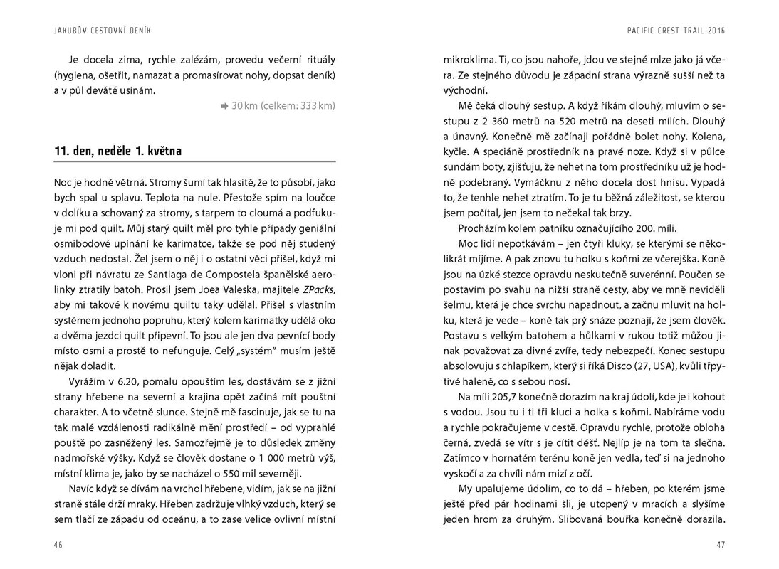 Někdy šel sám, jindy s těmi, kteří chtěli stejně jako on zmizet z každodenního kolotoče do míst civilizací téměř nedotčených. Po 121 dnech dorazil na hranice s Kanadou a jeho život už asi nikdy nebude stejný jako před tím.