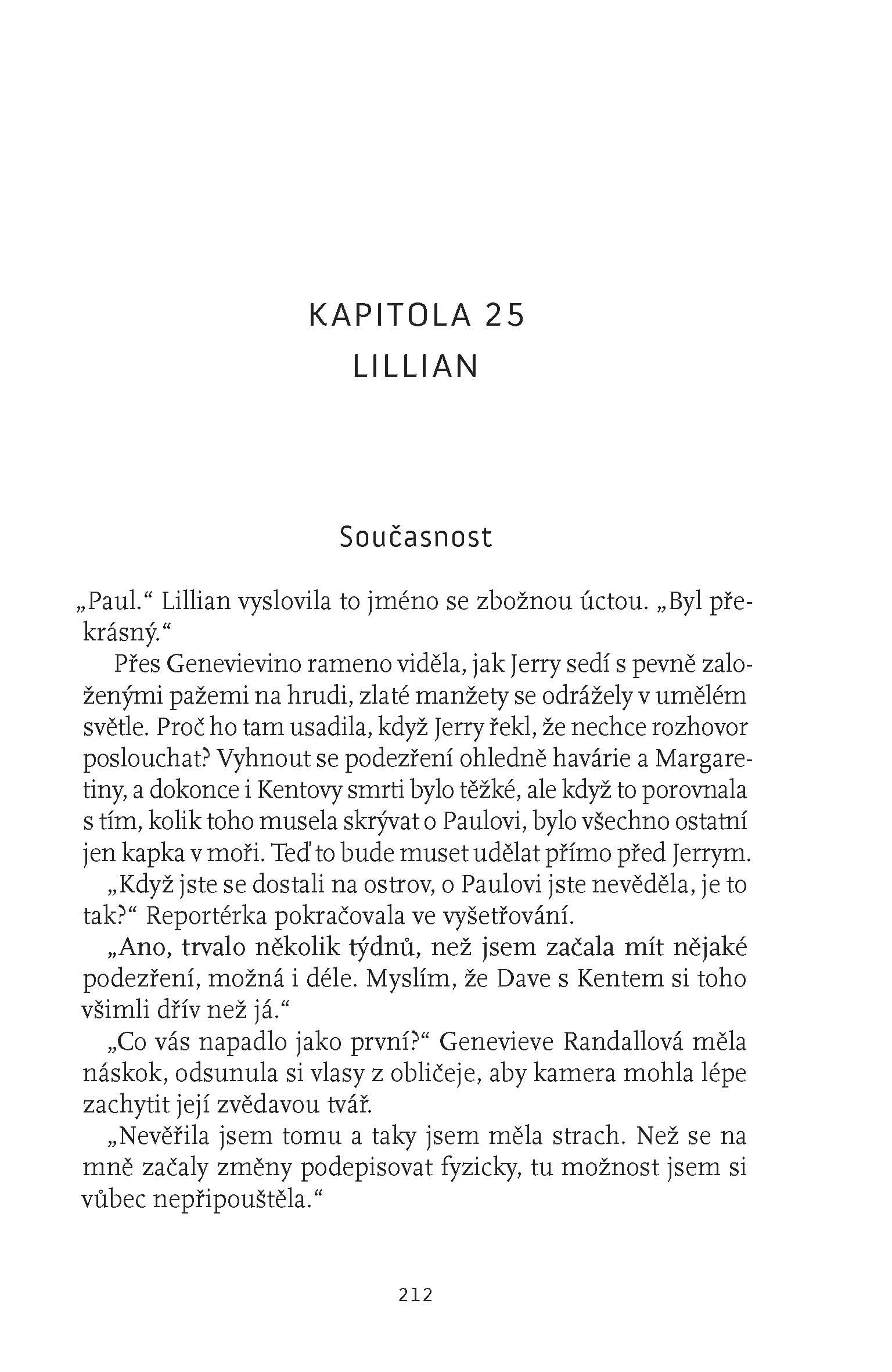 Lillian a Dave přežili leteckou havárii a trvalo téměř dva roky, než se dostali z pustého ostrova zpátky domů. Vracejí se k rodinám, ale jejich život už není jako dřív. Odmítají říct, co se po pádu letadla skutečně odehrálo, a novinářům i veřejnosti předkládají smyšlené historky. Jak dlouho jim lhaní vydrží a co se vlastně pokoušejí skrýt? Veřejnost je jejich příběhem fascinovaná, novináři jsou zvědaví, ale kartami zamíchá až drzá reportérka Genevieve. Je neodbytná, protože cítí, že za rouškou propracovaných lží zůstávají znepokojivé otazníky. Trávit čas na neobydleném kousku země uprostřed oceánu je děsivé, ale žít s temným tajemstvím je horší…