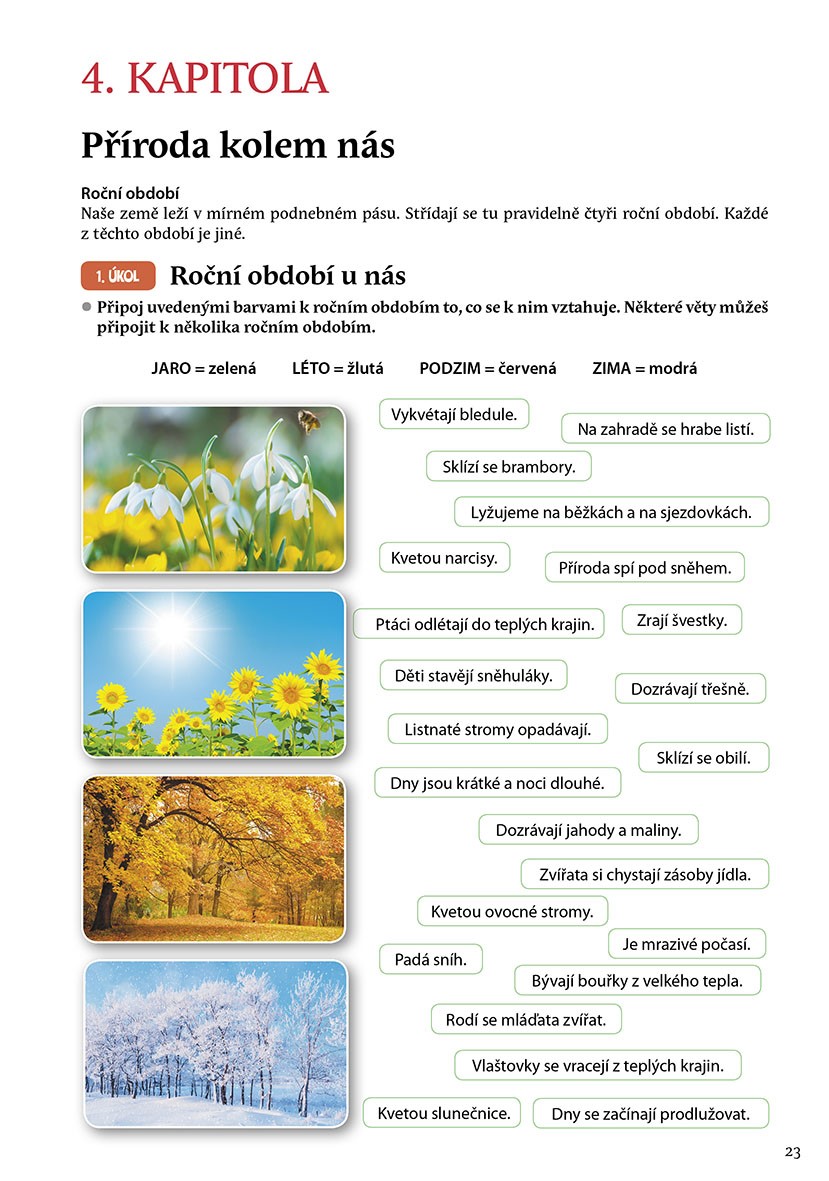 Učivo probírané ve škole je dobré procvičovat a upevňovat. Nejlépe zábavnou a hravou formou, která bude děti bavit. Na principu „škola hrou“ je postaven i tento pracovní sešit. Znalosti o světě kolem nás žáci získají prostřednictvím praktických cvičení. Pomocí stříhání, lepení, dokreslování či logického uvažování si rozšíří informace o naší vlasti, rodině, o čase či přírodě v průběhu ročních období.