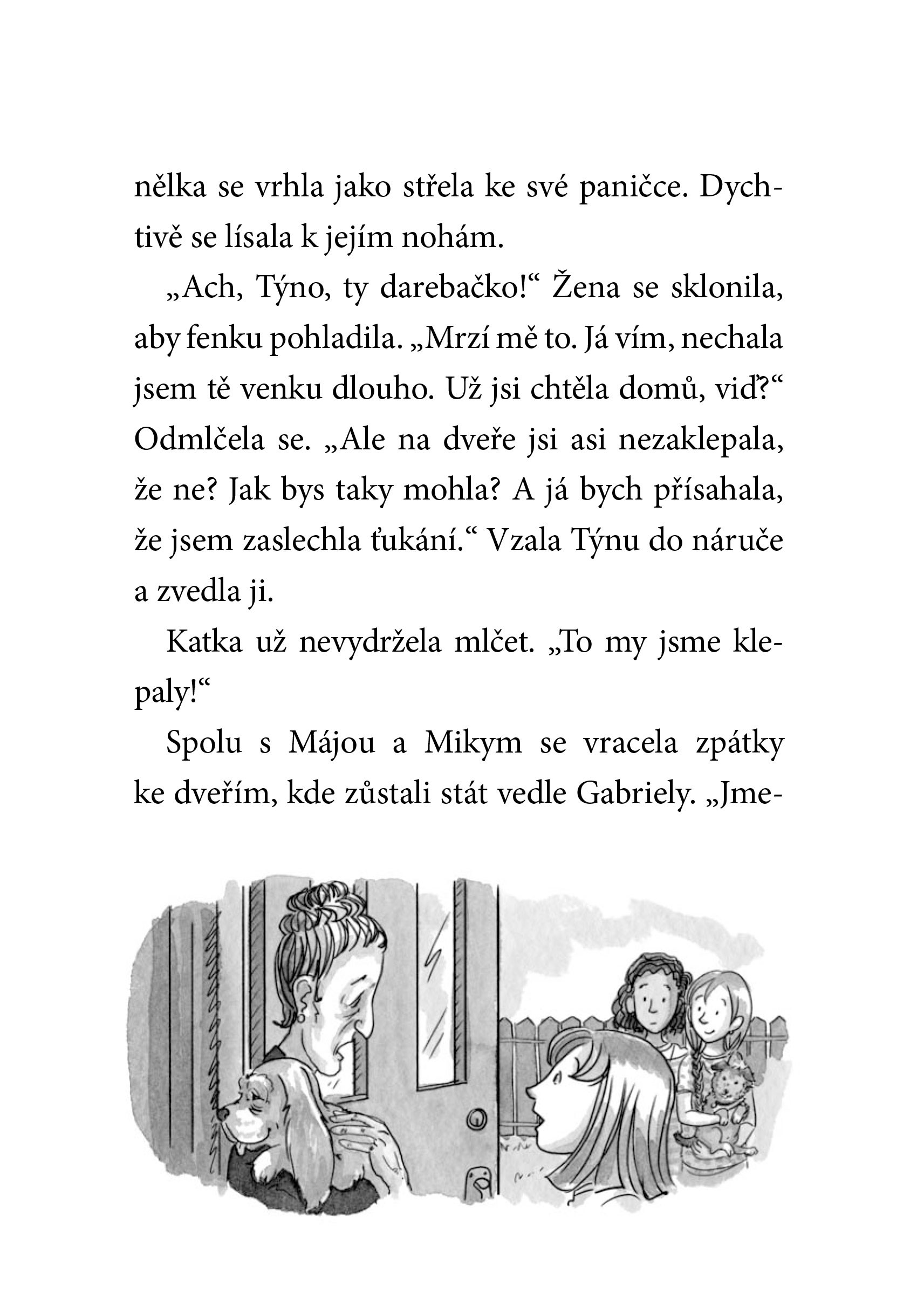 Potom najdou ztraceného kokršpaněla Týnu a zpočátku nevědí, co si s ním počít. Nemohou se dohodnout, co je pro fenku nejlepší. Najde Týna cestu domů? Podaří se Katce udržet přátelství s Májou i Gabrielou? Třeba tuhle zapeklitou situaci vyřeší detektiv Miky.