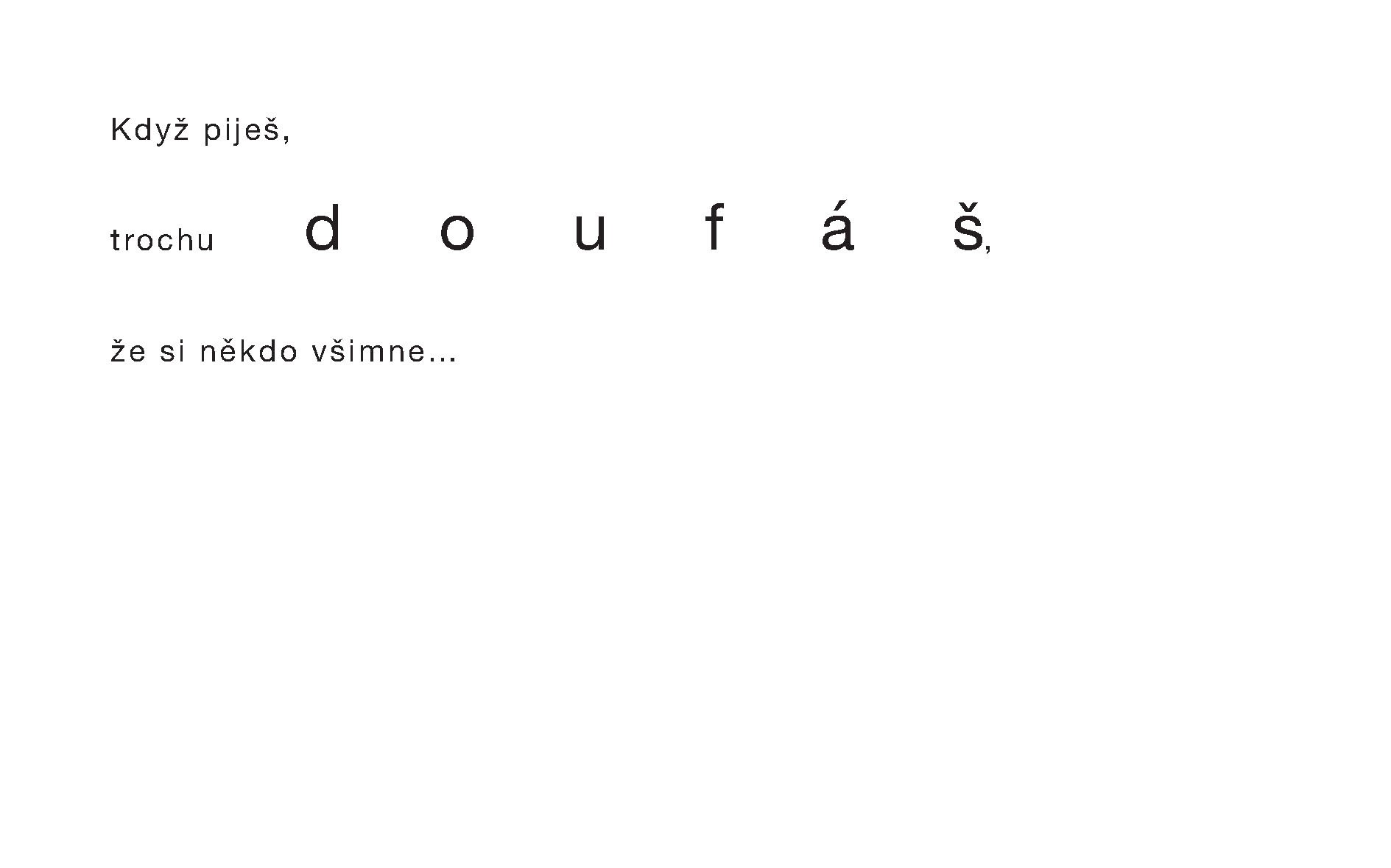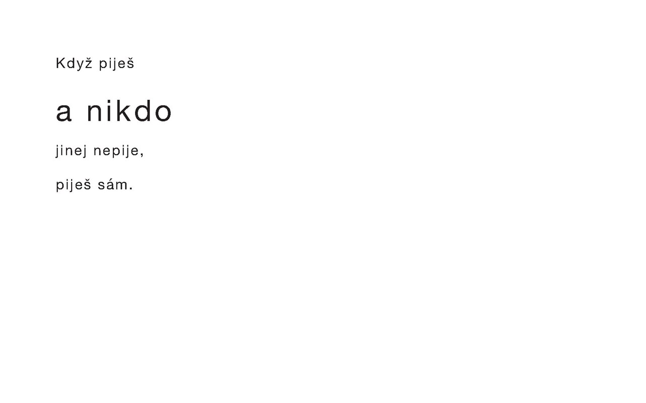 Když piješ… stávaj se ti různý věci. Někdy jejich sled vnímáš jen jako rychlý prolistování stránkama, jako sekvence několika za sebou jdoucích obrázků, ze kterejch se ti složí celej příběh. Někdy se zase zastavíš u jedný scény a přemýšlíš, jestli je čas obrátit list. Když piješ, bývá to někdy hořký, někdy něžný, někdy úsměvný, taky upřímný, krutý, nečekaný, plánovaný, dobrý i zlý.