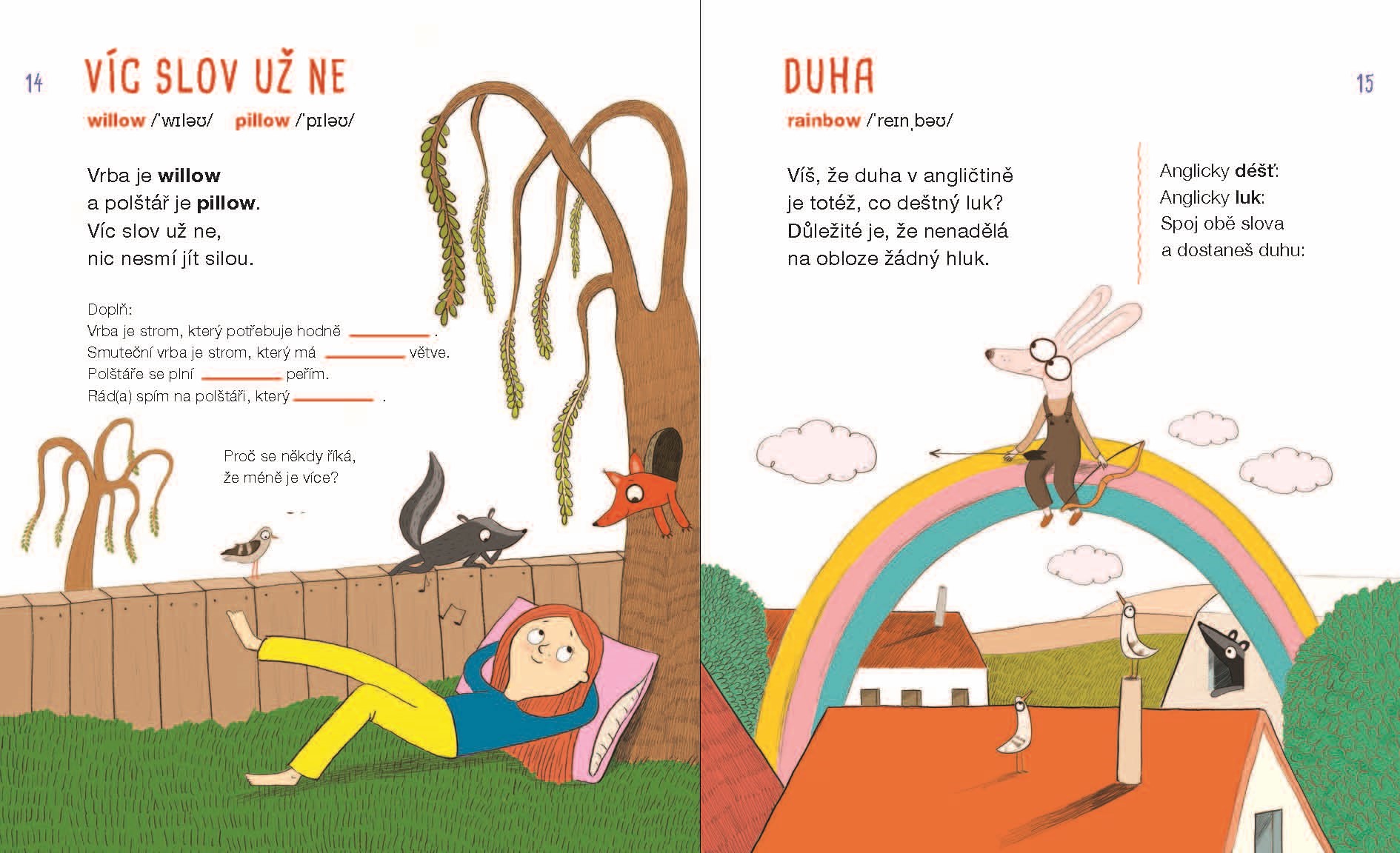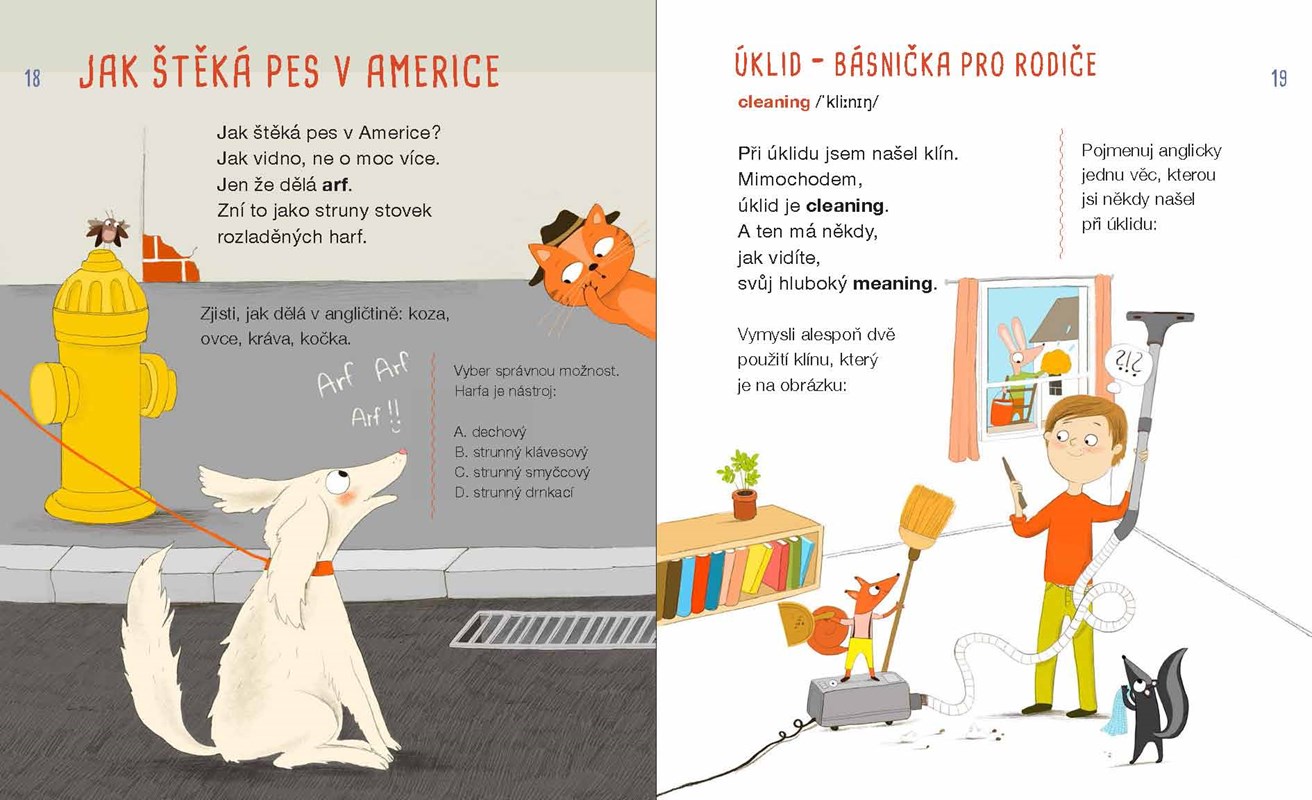 Hra s jazykem se nemusí omezovat jen na češtinu, nebo angličtinu, smíchat dva jazyky dohromady je totiž daleko větší legrace! V každé české básničce je zakuklené jedno anglické slovíčko. Nauč se ho a vyplň zábavné úkoly, které pro tebe autor vymyslel.