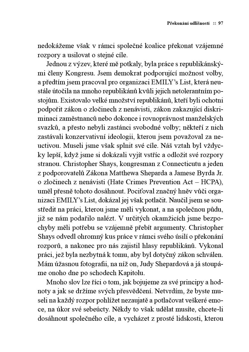Joe Solmonese, bývalý šéf Human Rights Campaign, největší organizace, hájící lidská práva v USA, ví mnoho o tom, jak dosahovat žádoucích společenských změn. Hlavní součástí jeho strategie bylo vždy patřičné zkrocení hněvu: naučil se vnímat tuto emoci jako zdroj energie, kterou je třeba vhodným způsobem usměrnit a využít. Ukazuje nám, jak lze rozhořčení proměnit v produktivní postup vedoucí k postupnému splnění našich cílů či snů. V rámci složitých bojů o rovnoprávnost si například uvědomil, že je lepší spíše být empatický vůči svým protivníkům, než je hanobit. Radí také, abychom hledali spojence i tam, kde je jejich přítomnost nepravděpodobná.