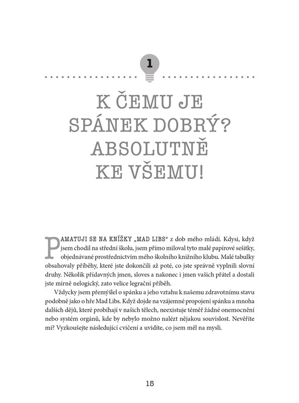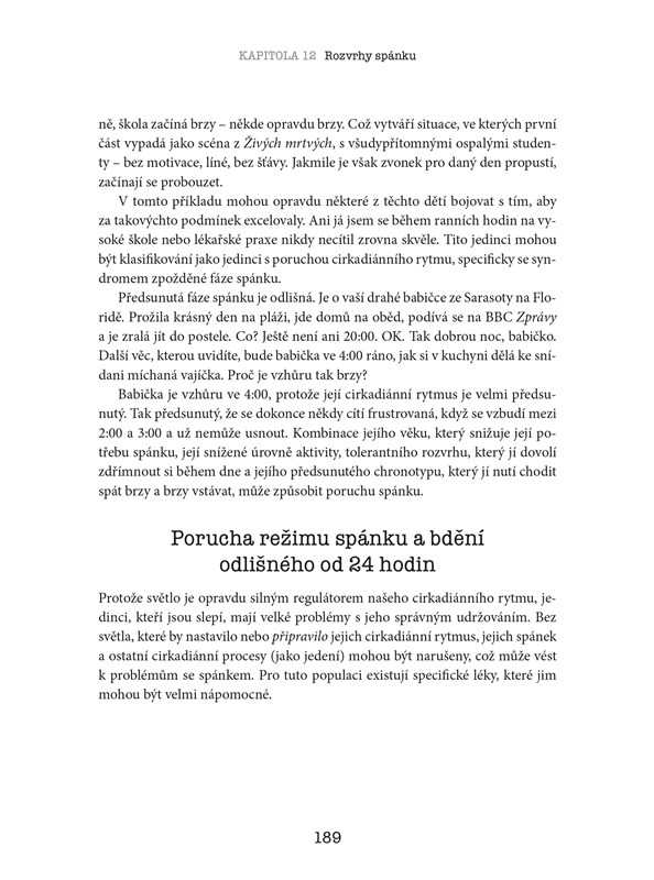 V knize se dozvíte jak funguje spánek, co dělá se spánkem vícesměnná práce, proč jsou léky na spaní obecně nesprávně pochopeny, a proto nadužívány, jak můžete dosáhnout skvělého spánku i bez léků a preparátů, vše o spánkových poruchách od nespavosti a chrápání až po spánkovou apnoe, syndrom neklidných nohou či poruchy cirkadiánního rytmu.