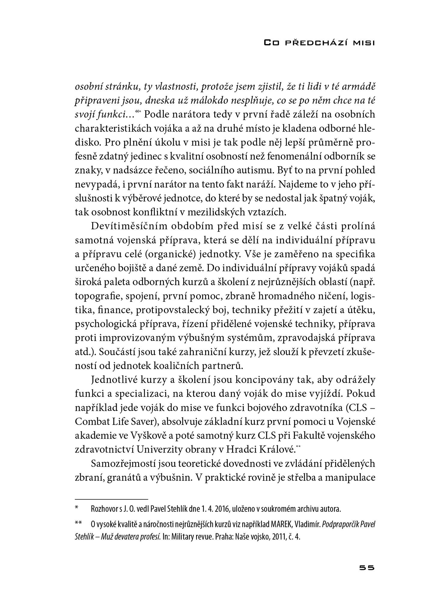 Přináší tak obraz „neobyčejně obyčejných“ životů vojenských profesionálů na zahraniční misi se všemi každodenními radostmi, strastmi i vnitřními pocity. Jde o ojedinělý ucelený pohled na téma, kterému dosud nebyla takto do hloubky věnována pozornost.