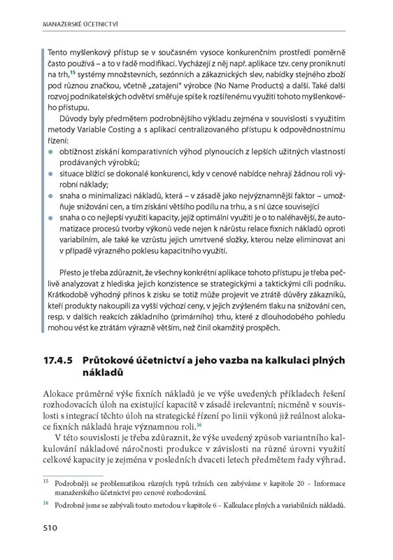 Toto již čtvrté vydání úspěšné monografie je významně aktualizováno a obohaceno o řadu „novinek“ s cílem reagovat na další vývoj manažerského účetnictví a jeho navazujících oborů. Nově je do ní proto například zapracováno využití tzv. průtokového účetnictví v rozhodování na existující kapacitě, možnosti aplikace manažerského účetnictví v řízení vztahů vůči zákazníkům, jeho vazba na systémy měření výkonnosti a problematika environmentálního manažerského účetnictví a jeho vztahu k účetnictví udržitelného rozvoje.
