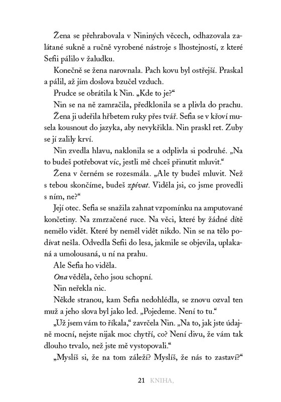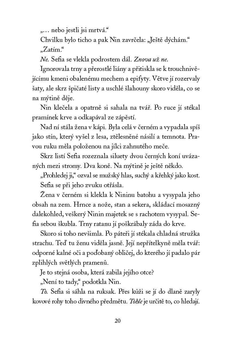 Sefia ovládá umění přežít. Poté, co byl její otec zavražděn, ukrývala se totiž společně se svojí tetou Nin v divočině. Naučila se lovit, stopovat a také krást. Když jednoho dne tetu unesou, zůstane sama a začne si klást otázky. Kdo Nin unesl a proč? Souvisí její zmizení s otcovou vraždou a s tím podivným hranatým předmětem, který teta tak pečlivě schovávala?