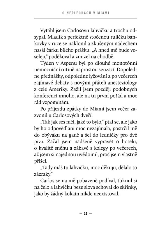 Další dílo z miamské série odkrývá nové detaily z nám již známého „špitálu“. Nové střípky do mozaiky postav a postaviček doktorů jsou podány tak, jako bychom s nimi v lékařské jídelně zrovna také seděli a nezávazně tlachali. Pod zdánlivou plytkostí doktorských hovorů u snídaně je možno vycítit nutnost jakéhosi odreagování před dalším náročným dnem. Autobiografické části knihy jsou psány s velkou upřímností a v mnohém odhalují i povahu samotného autora.